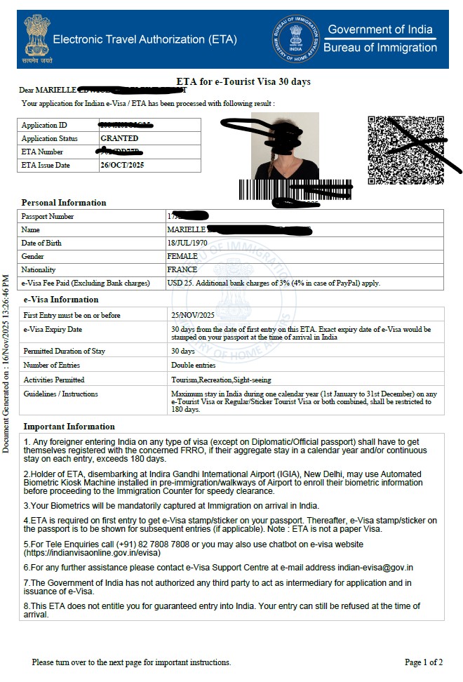 👉 Je reçois mon e-Visa (30 j / 1 an / 5 ans) à l’immigration→ je peux entrer en Inde.