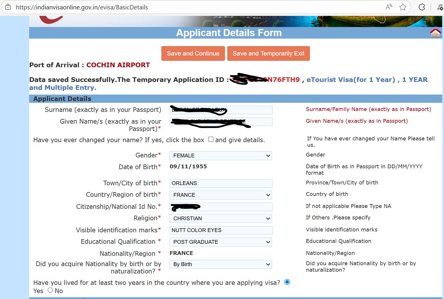 3- PENSER à noter immédiatement THE TEMPORARY APPLICATION ID – :